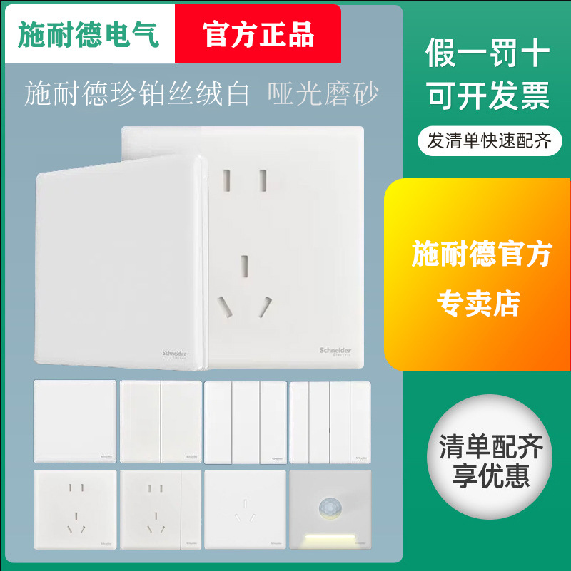 施耐德珍铂开关插座面板白色墙壁插座五孔面板家装面板家装批发