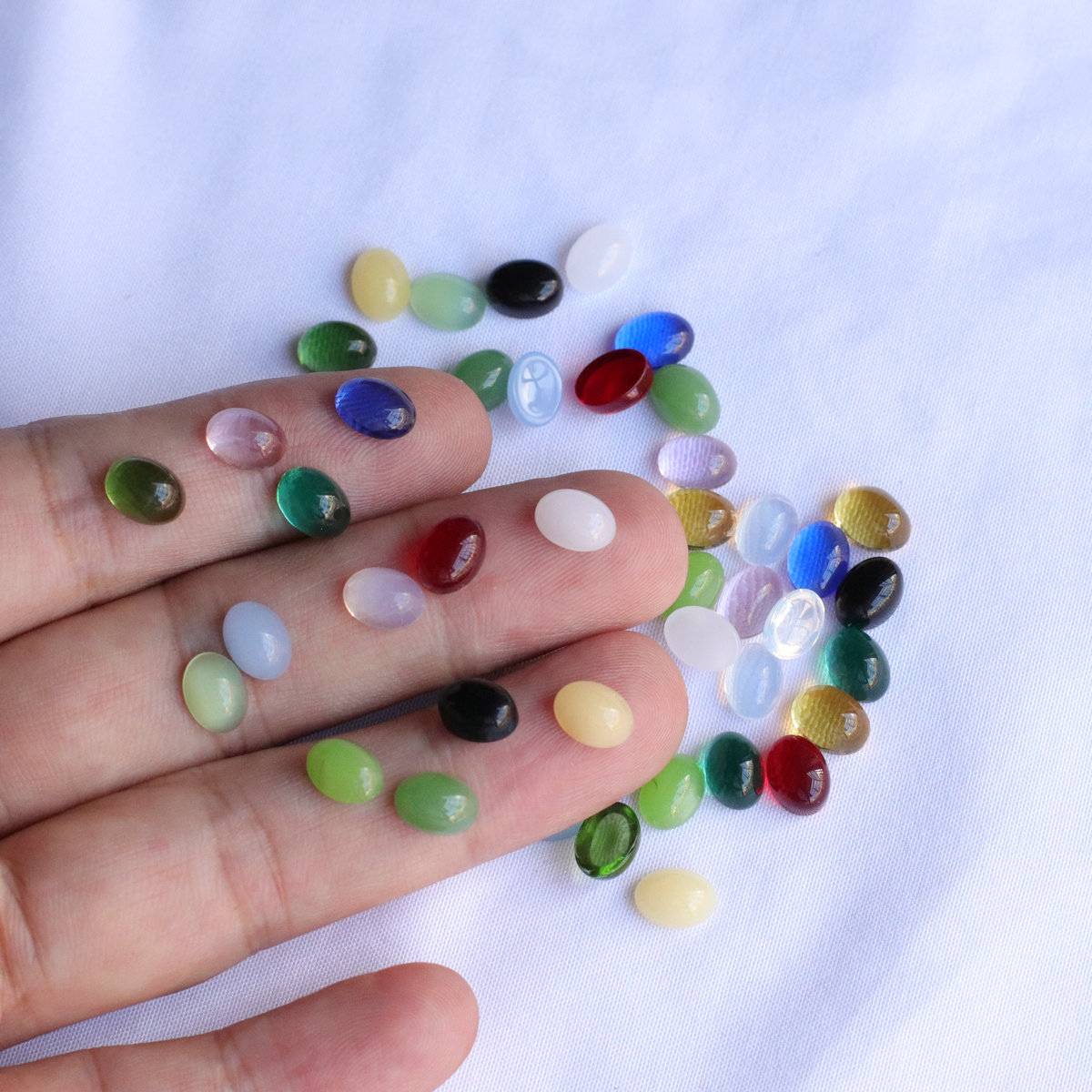 6*8mm戒面仿水晶玛瑙玉髓玻璃椭圆贴片diy饰品美甲配件厂家批发