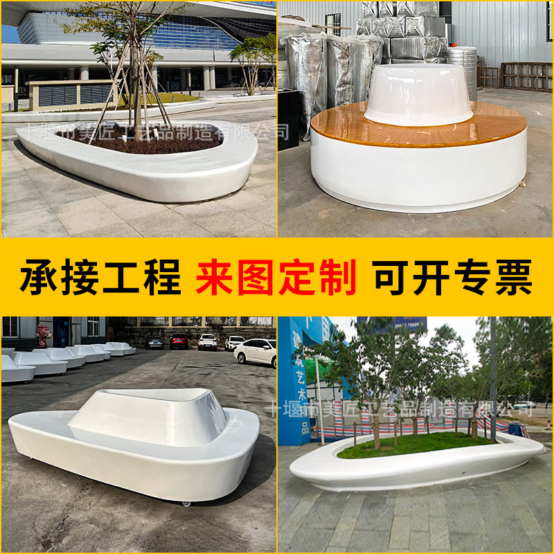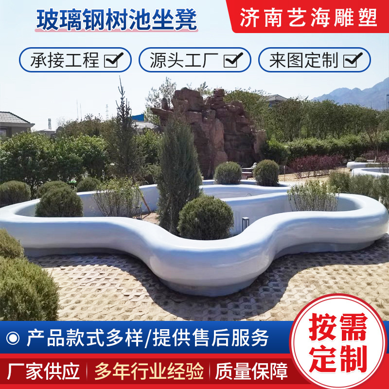 玻璃钢树池坐凳商场休闲长条椅园林公园大型 玻璃钢异形座椅雕塑