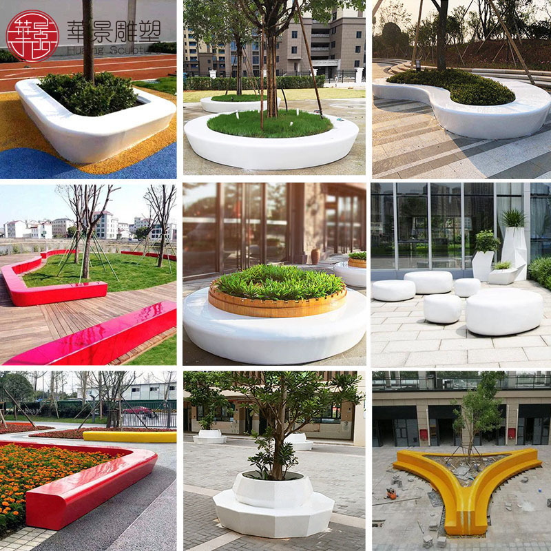 玻璃钢树池户外园林种植池景观休闲椅 异形长条凳学校公园GRC坐凳