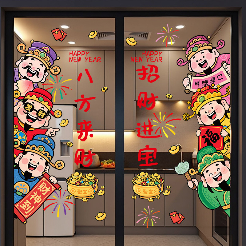 2026元旦马年新年窗花贴画静电玻璃门贴纸过年装饰财神爷厨房布置