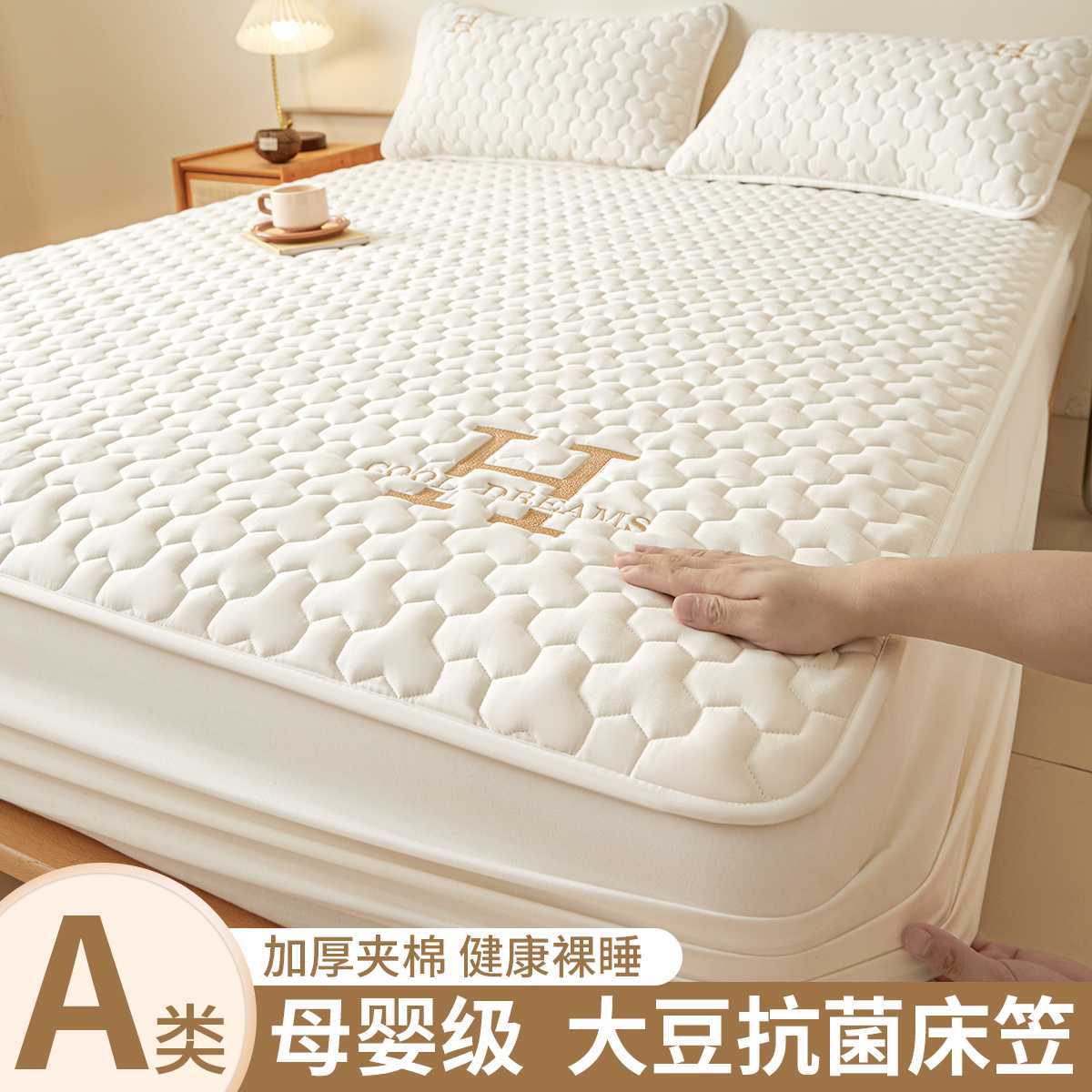 A类抗菌里外全棉100%新疆棉花填充夹棉床笠罩加厚全包床垫保护罩