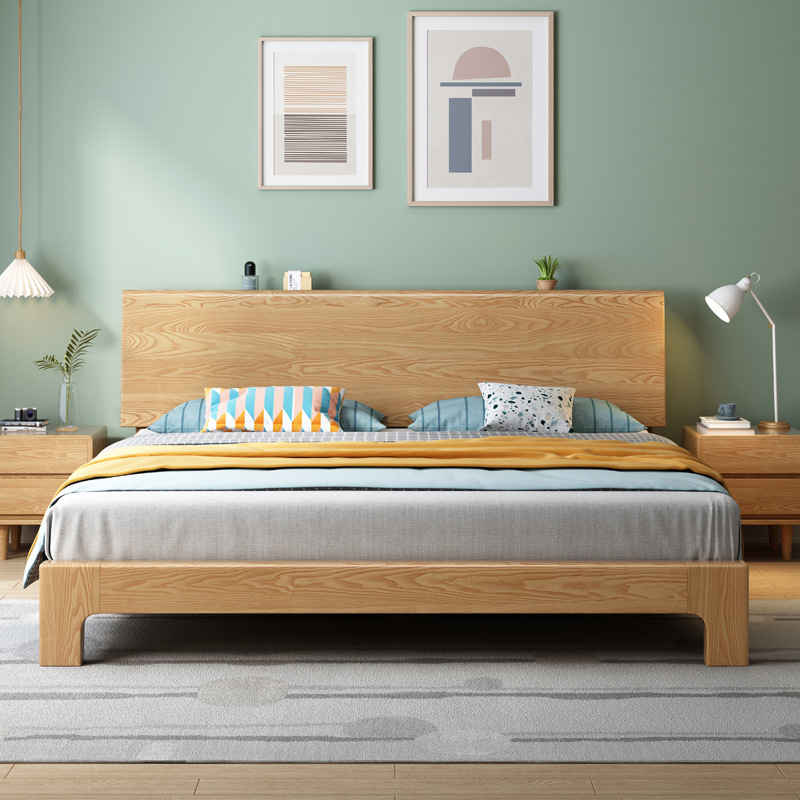 北欧白蜡木实木床现代简约主卧1.8米双人床1.5米单人床经济型家具