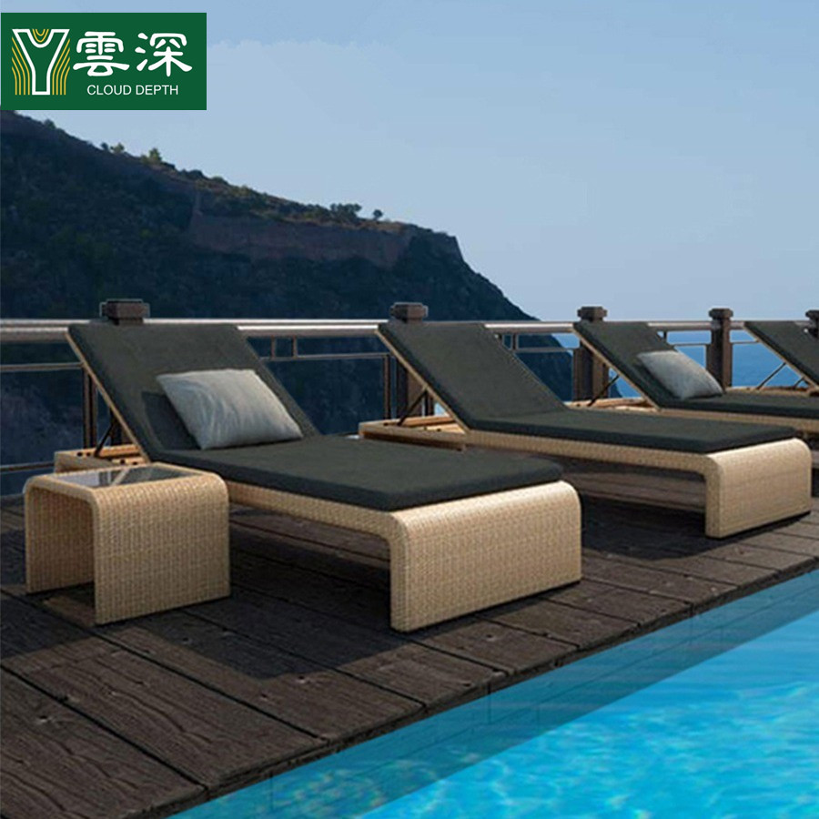 室外泳池躺椅藤编防水防晒沙滩椅庭院花园阳台休闲露天户外躺床