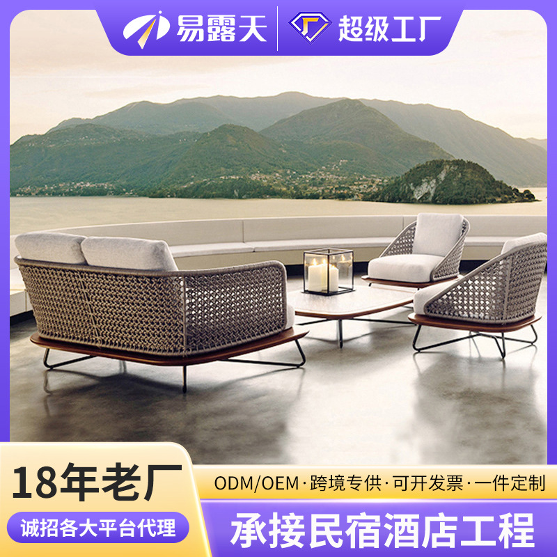 户外沙发庭院别墅藤编家具柚木客厅民宿室外露台阳台藤椅沙发组合