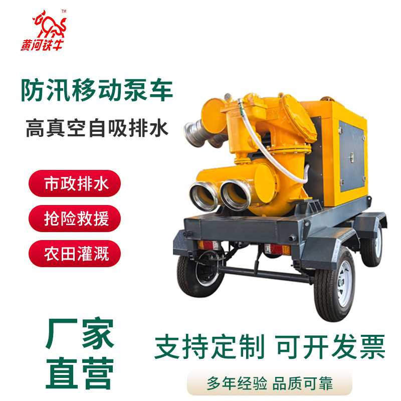 厂家直供柴油机水泵12寸 高真空自吸排水泵车农用灌溉移动水泵黄