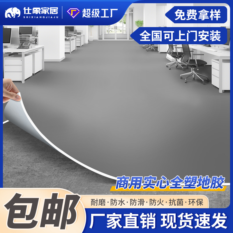 纯灰色地胶pvc塑胶地板工厂仓库水泥地直接铺加厚耐磨防水地板革