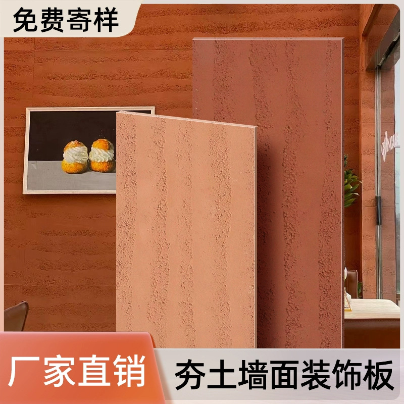 夯土板柔性石材水泥浇筑板布纹石洞石背景墙装软质饰面板A级