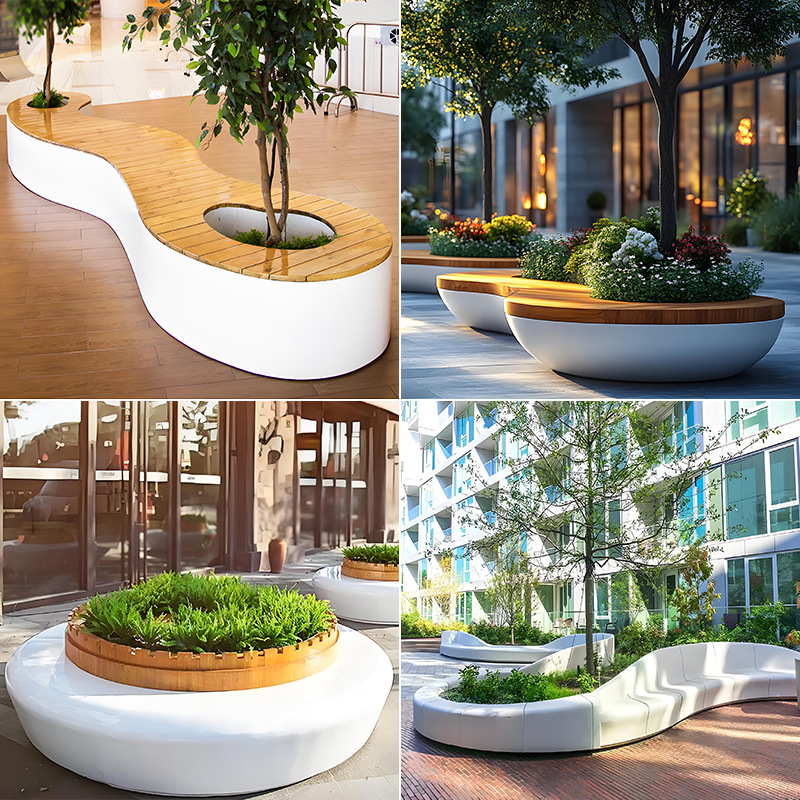 玻璃钢树池户外座凳组合公园座椅花池机场等候椅商业街创意休闲椅