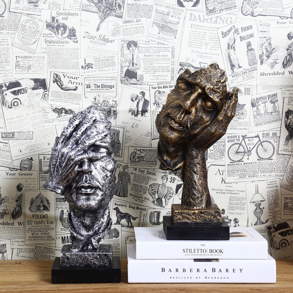 创意客厅艺术装饰品摆设沉默是金雕塑复古树脂工艺品摆件 16324