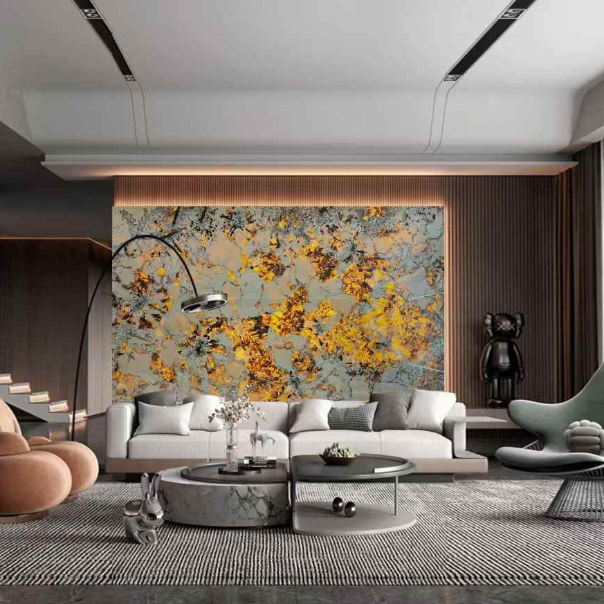 孔雀开屏大理石透光石板 天然奢石石材背景墙室内装修