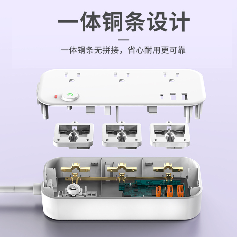 美标插排美式PD20W快充排插家用办公6孔3位插排TYPEC口美标插线板