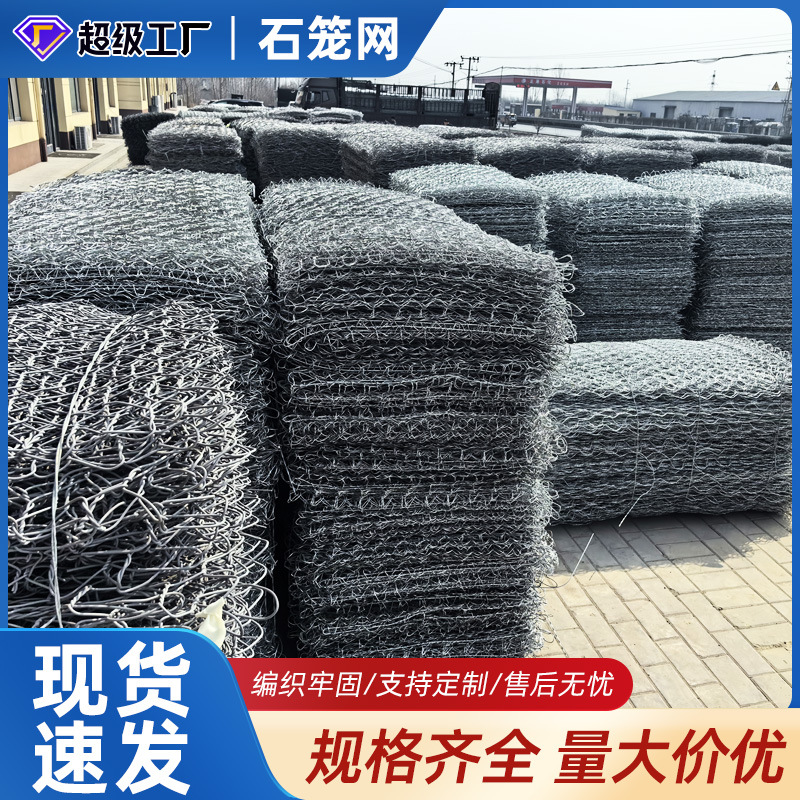 镀锌石笼网格宾网铅丝石笼网防汛固堤雷诺护垫工程热镀锌石笼网箱