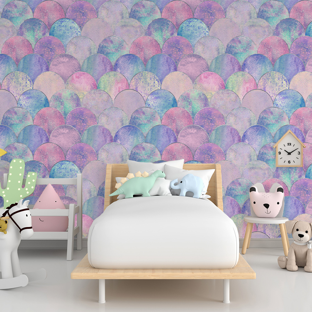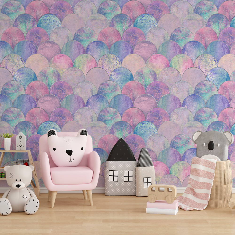 爱拼DD45101新款创意粉色甜心多色鱼鳞墙纸 儿童房背景墙装饰贴纸