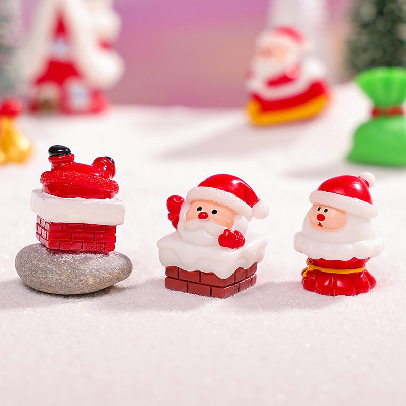 跨境外贸圣诞节圣诞老人礼盒摆件雪地造景树脂diy工艺装饰小摆件