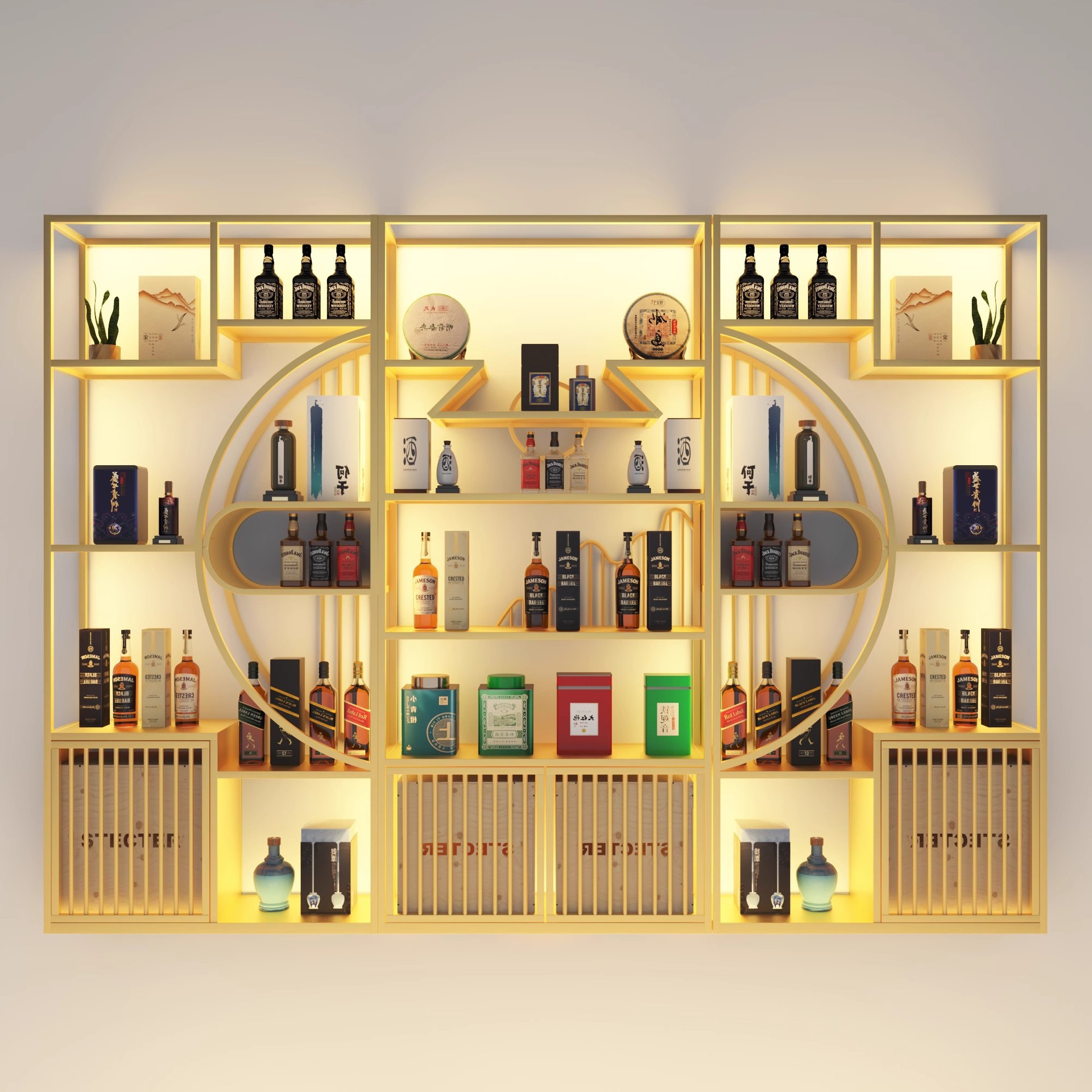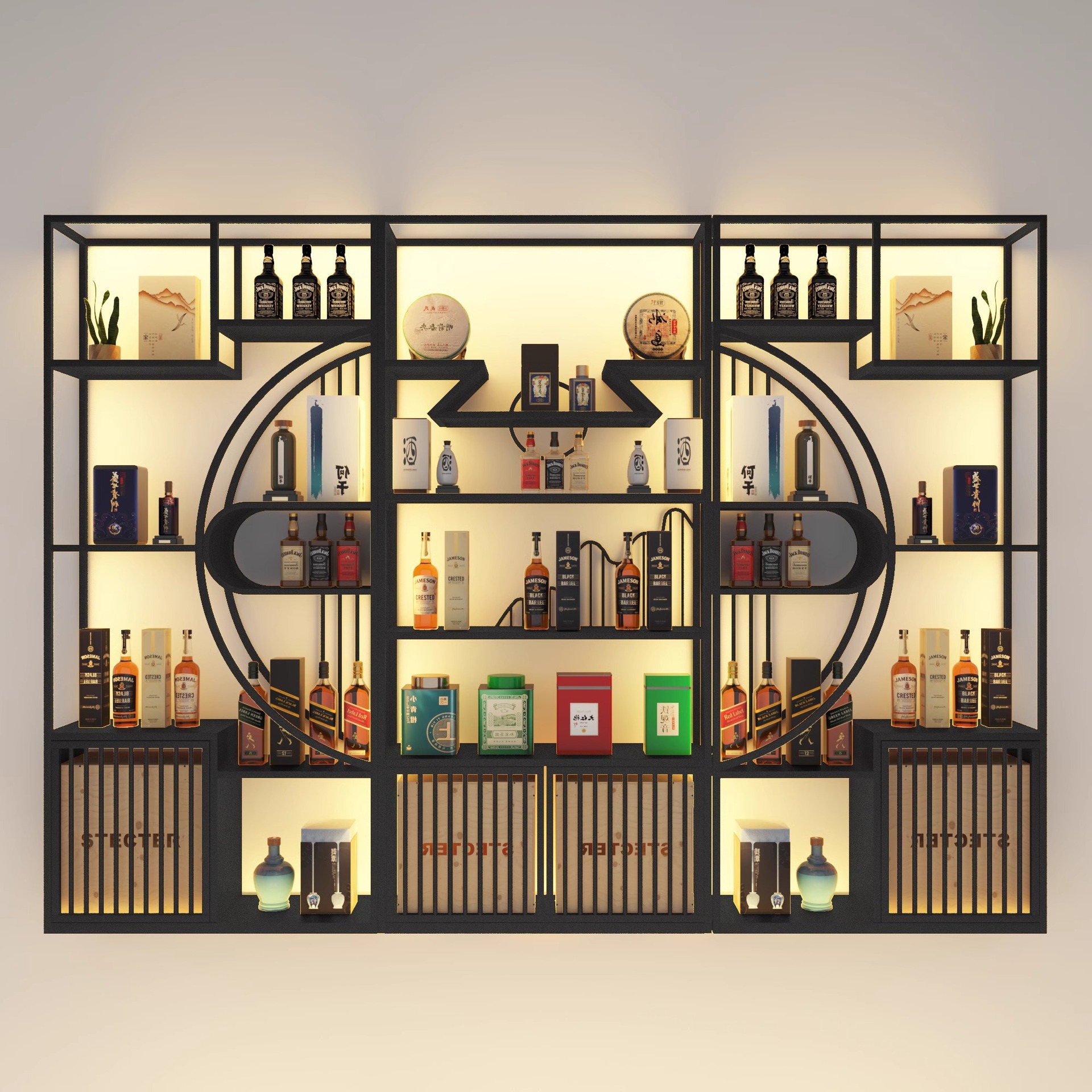 酒行酒窖酒架轻奢新中式酒庄酒柜红酒白酒展示柜落地铁艺置物架