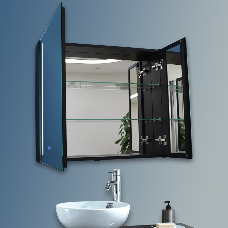 led太空铝镜柜 出口智能浴室柜台单双门卫浴柜防雾挂柜储物镜柜