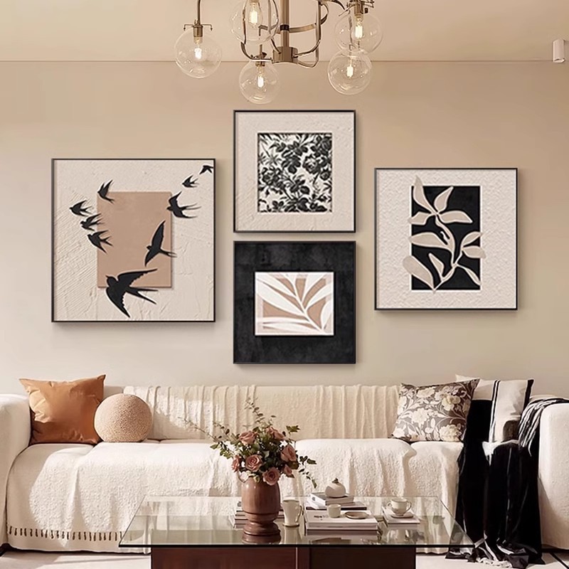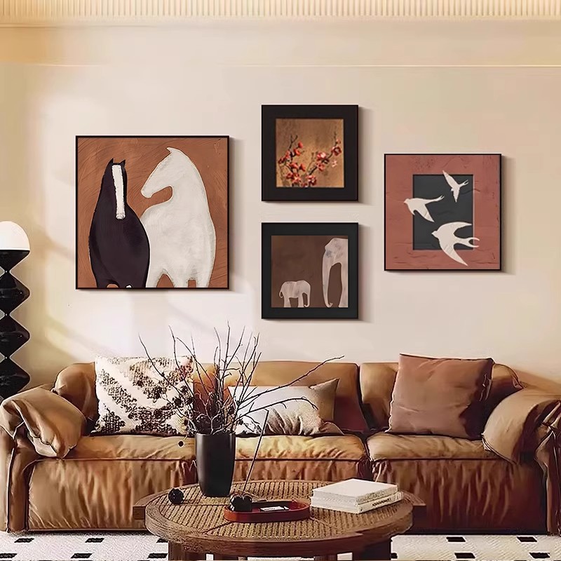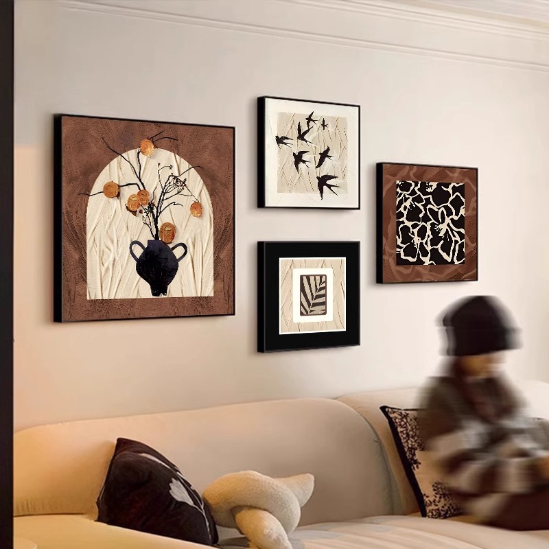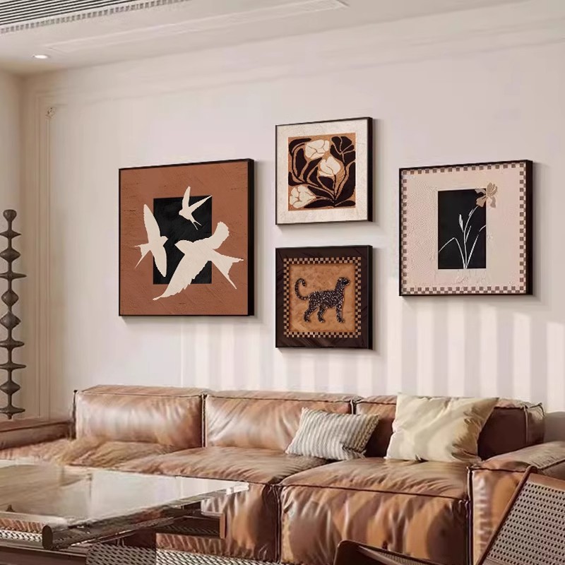 中古风装饰画高级感客厅沙发背景墙壁画样板间法式复古组合挂画
