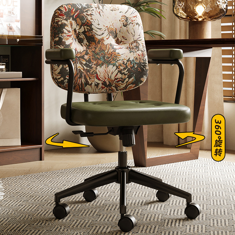 - 墨绿色+向日葵-头层牛皮+提花布【升降旋转逍遥款】