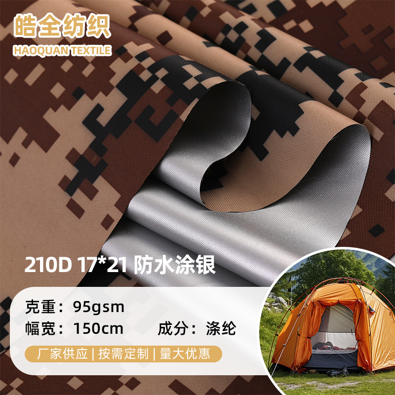 210D 17*21 防水涂银牛津布 户外遮阳车衣天幕野营帐篷面料