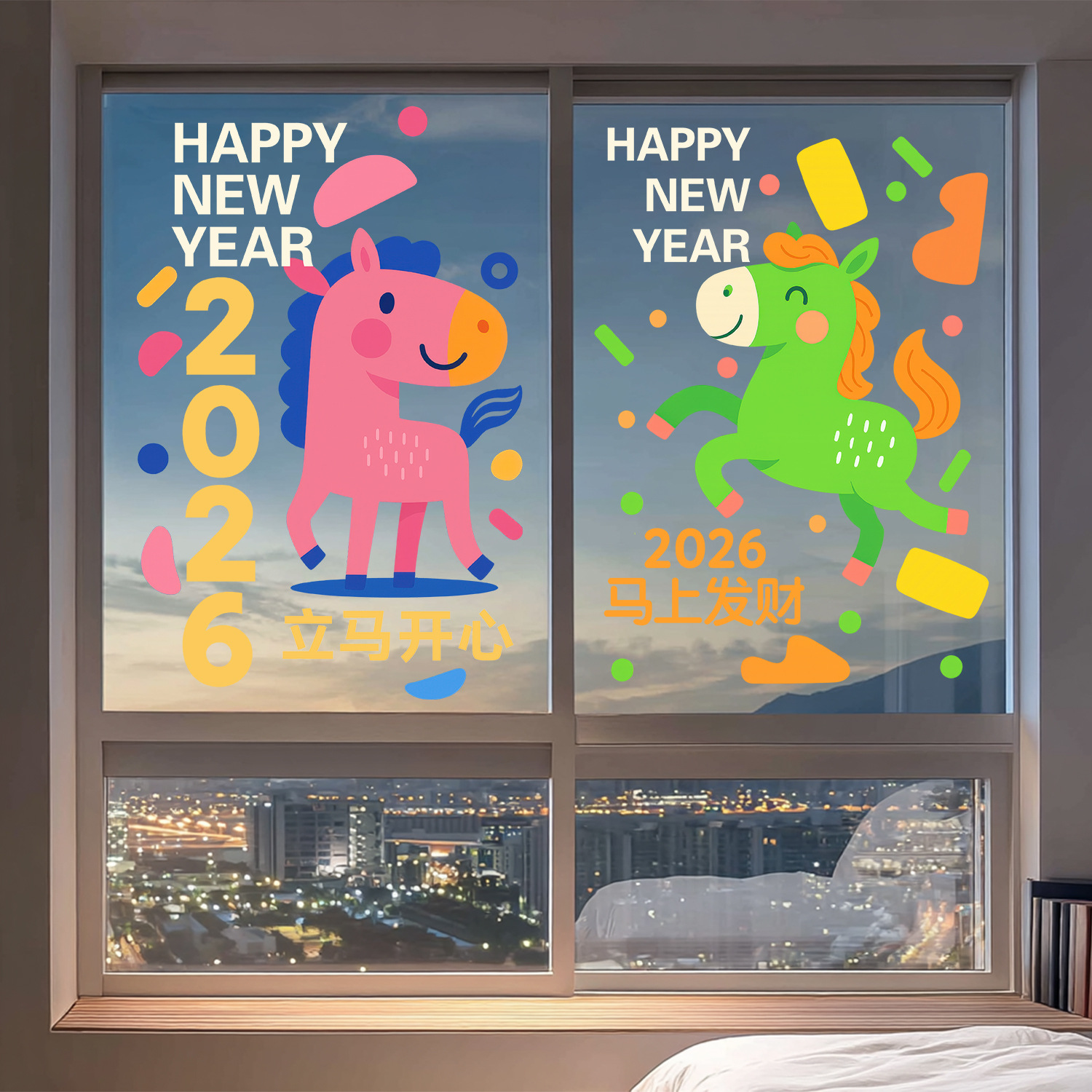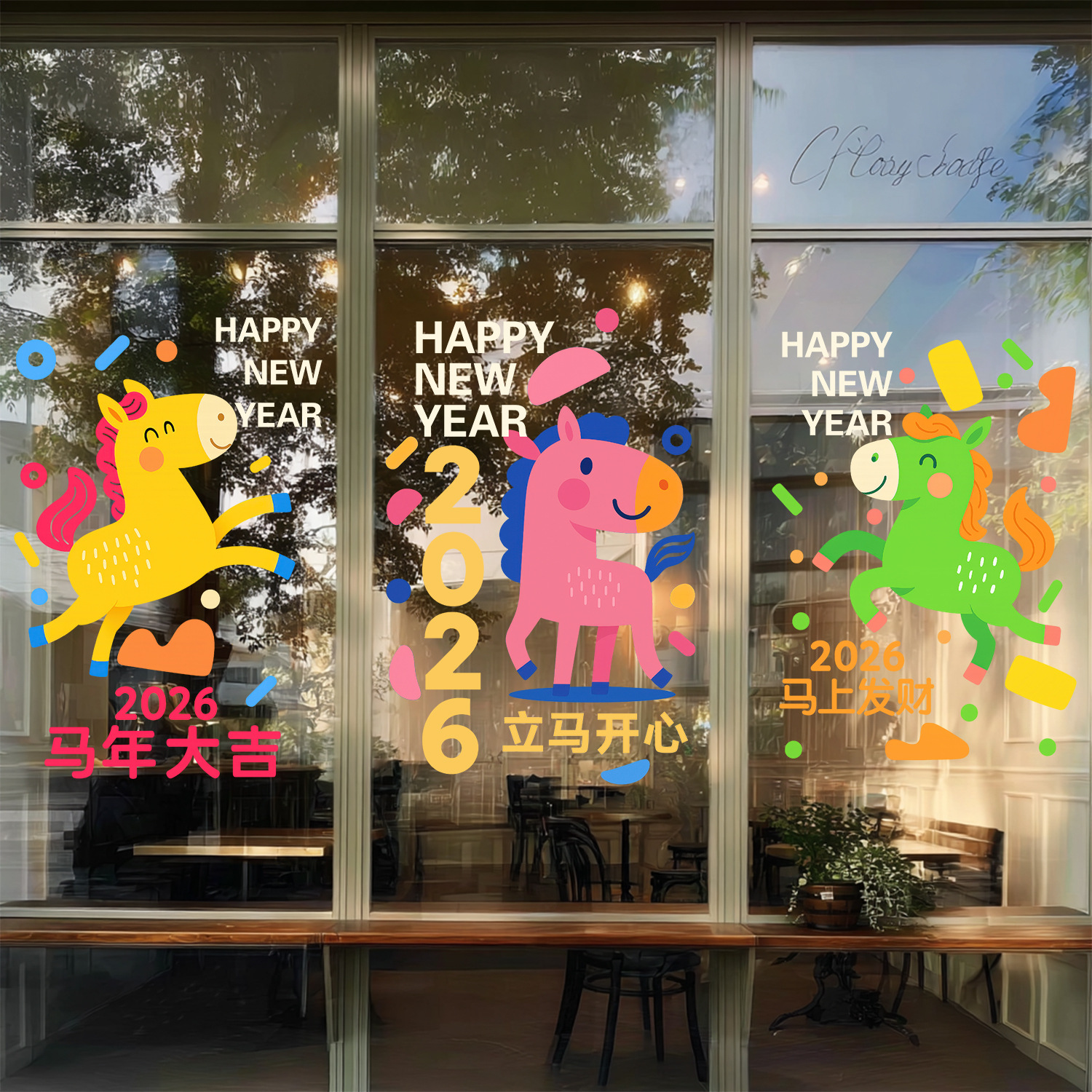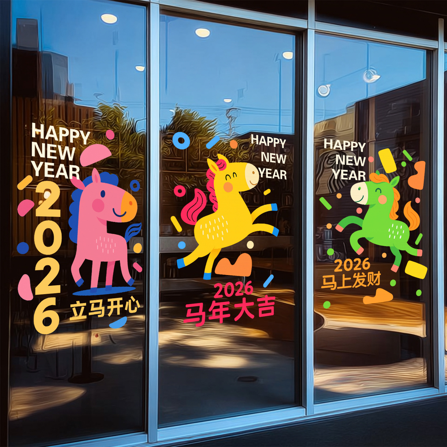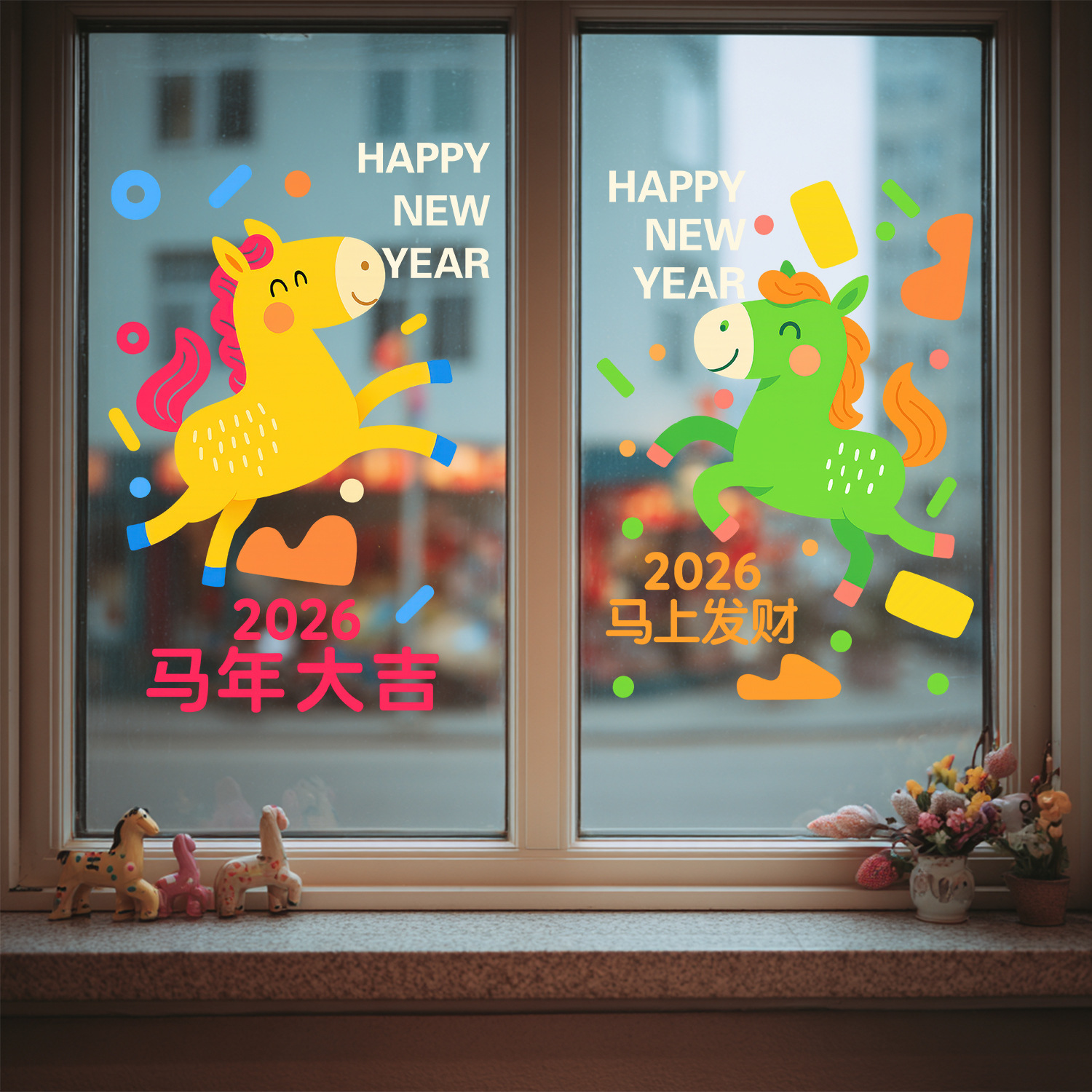 2026马年贴纸创意小马静电贴新年装饰门贴元旦节日玻璃贴阳台窗贴
