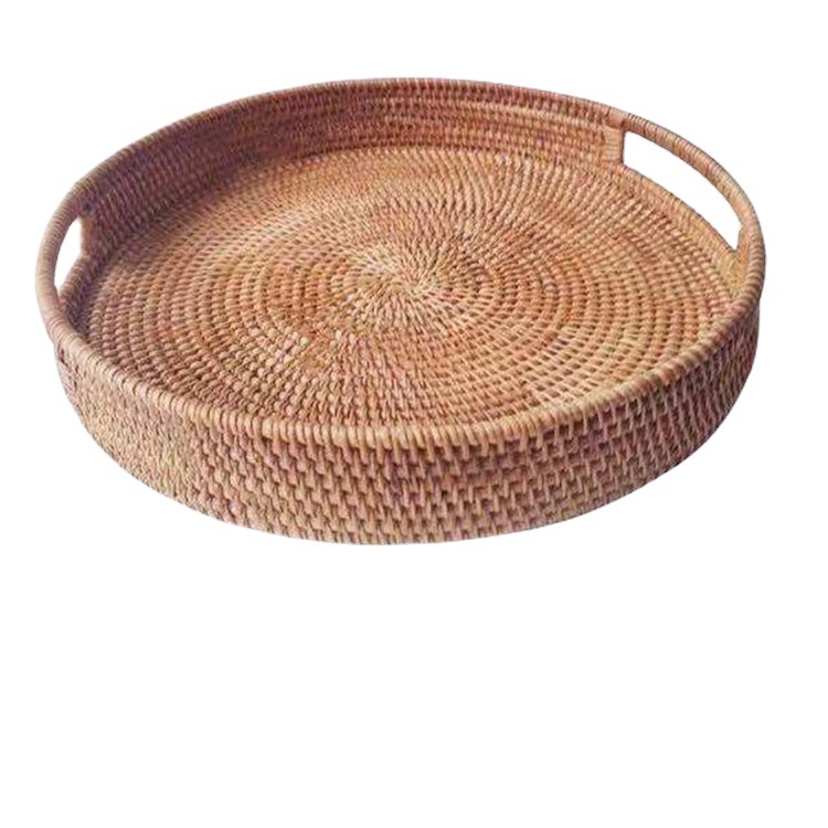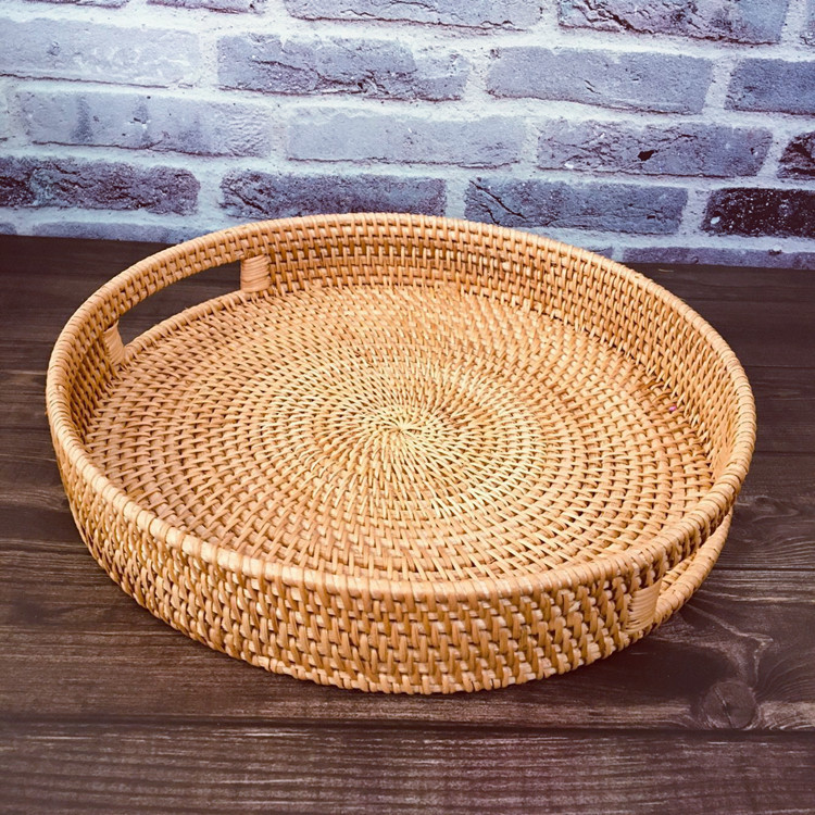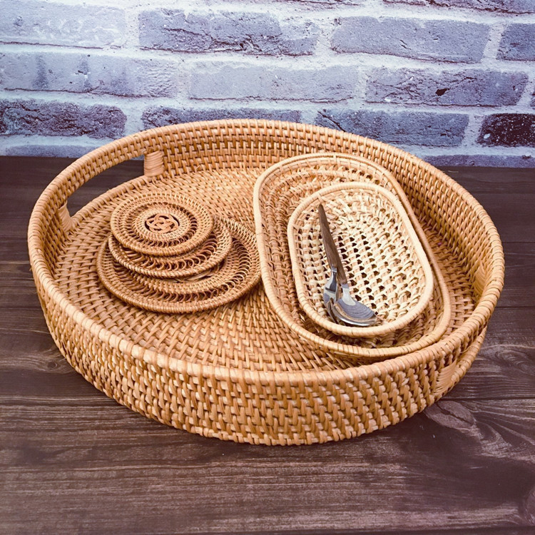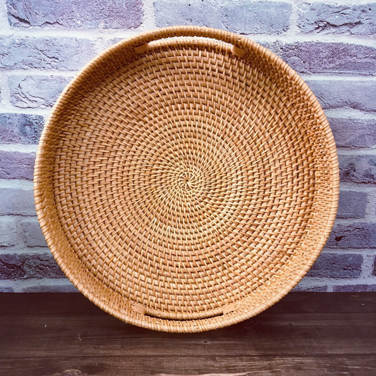 越南秋藤客厅藤编收纳水果篮 圆形糖果 零食点托盘 收纳篮2件套