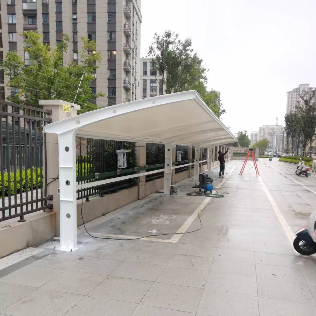 电动车遮雨棚膜结构车棚汽车停车棚张拉膜景观棚遮阳雨棚家用车棚