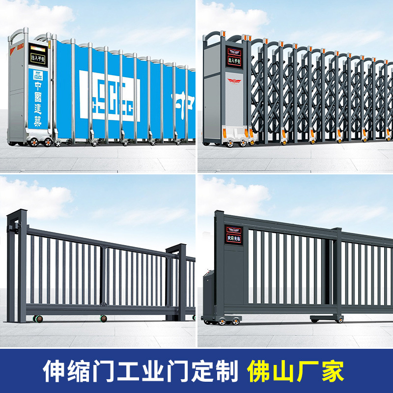 工厂大门不锈钢伸缩门厂家无轨智能电动门工地学校自动折叠伸缩门