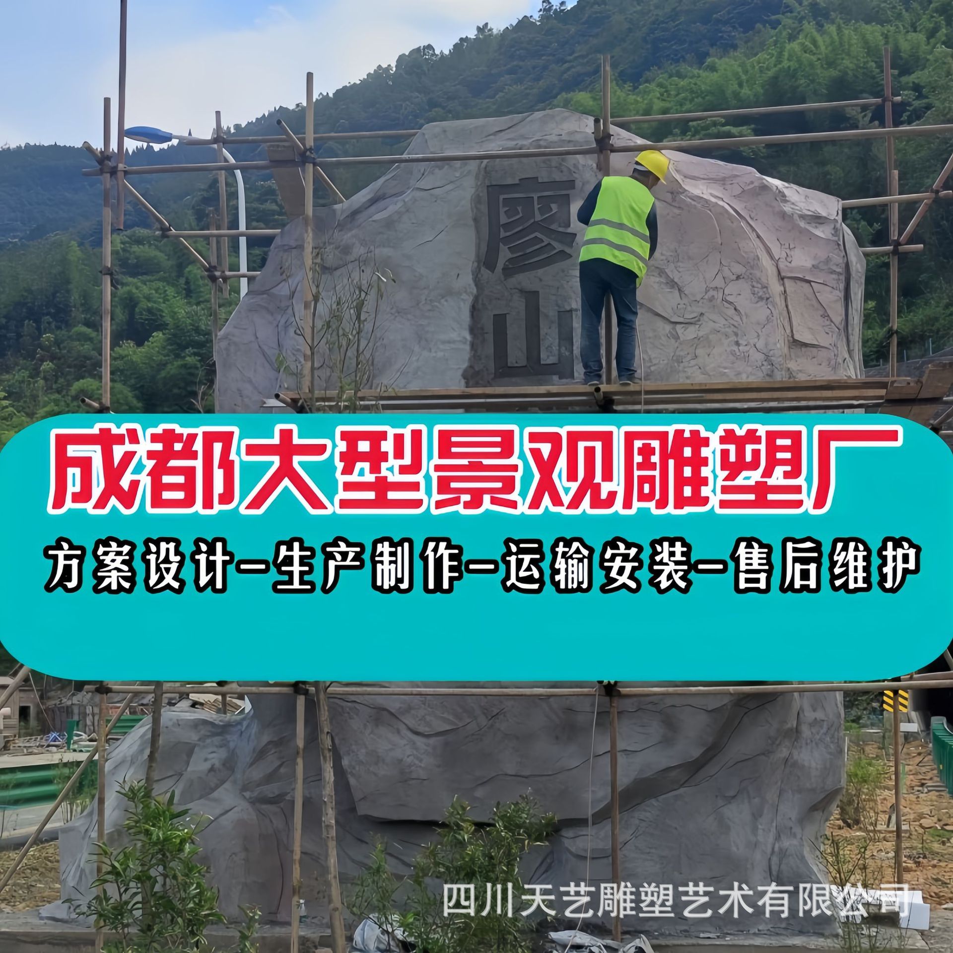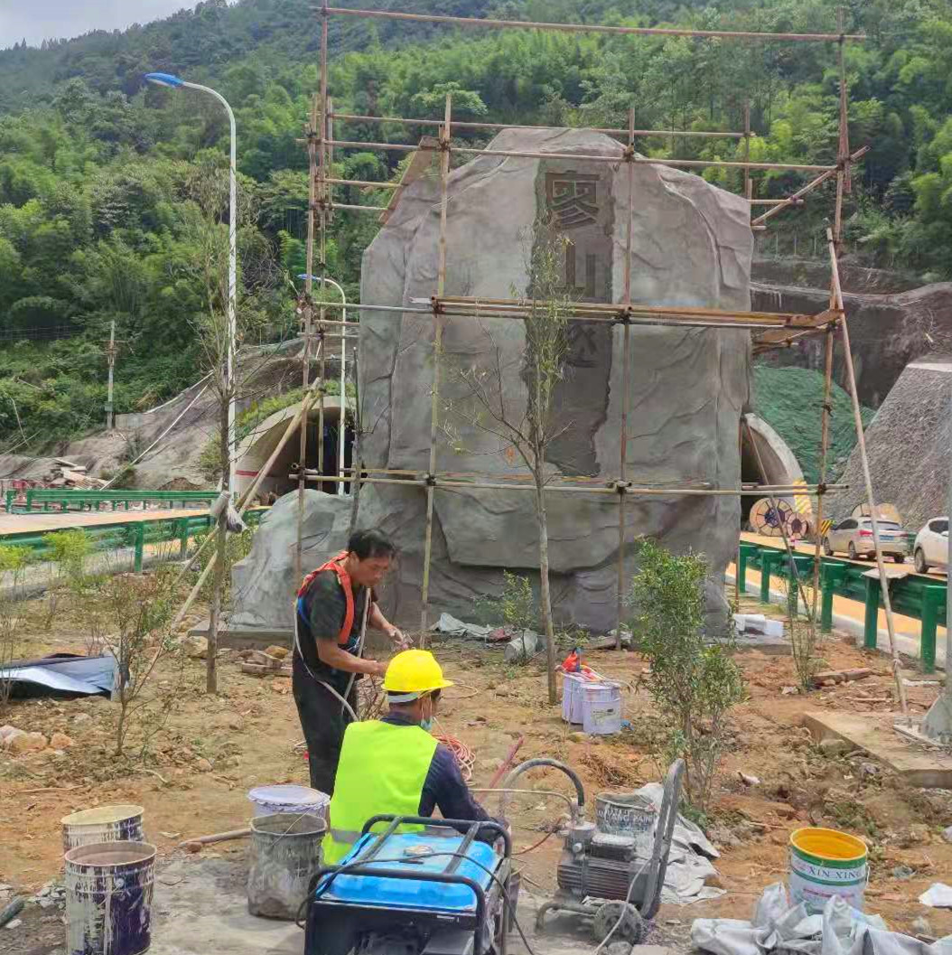 成都景观厂家大型高速仿石假山刻字水泥直塑石景黄蜡石仿真石雕刻