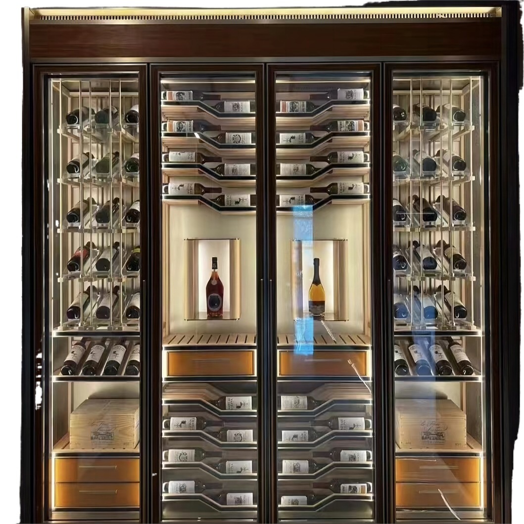 酒窖不锈钢金属白酒红酒柜雪茄柜恒温恒湿展示柜定 制绢花通用客
