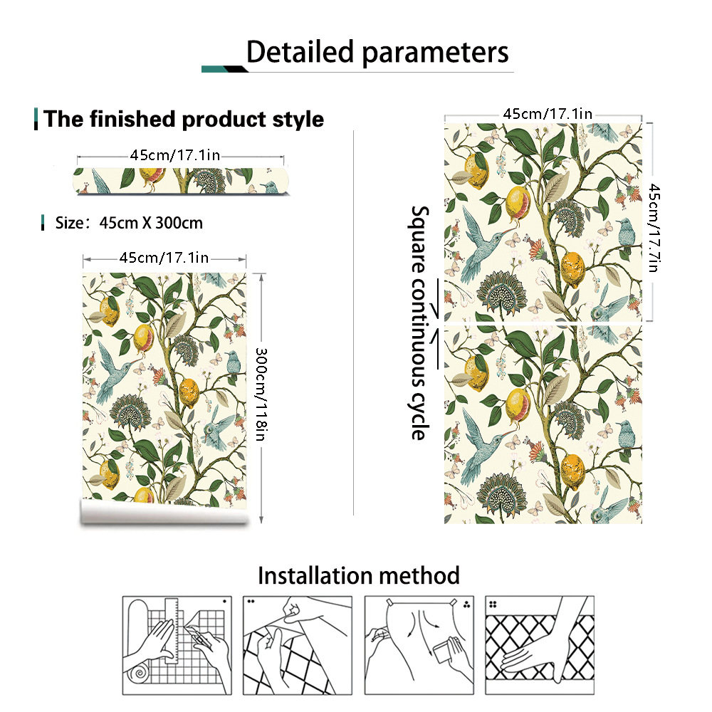 植物花卉pvc墙纸定制跨境自粘壁纸背景墙家具装饰翻新壁画厂家