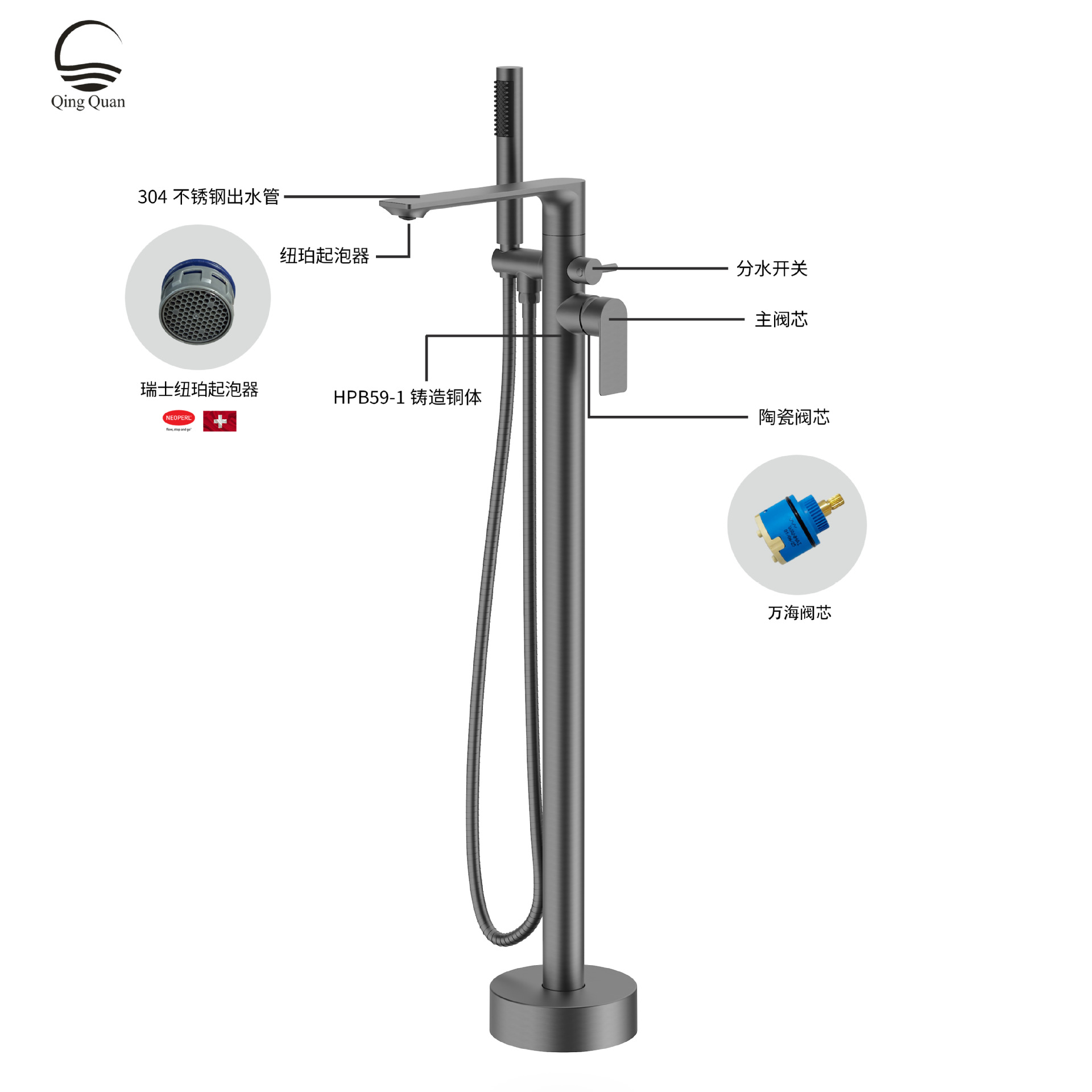 跨境独立浴缸大流量落地水龙头缸边立柱盆冷热混水阀两用龙头花洒