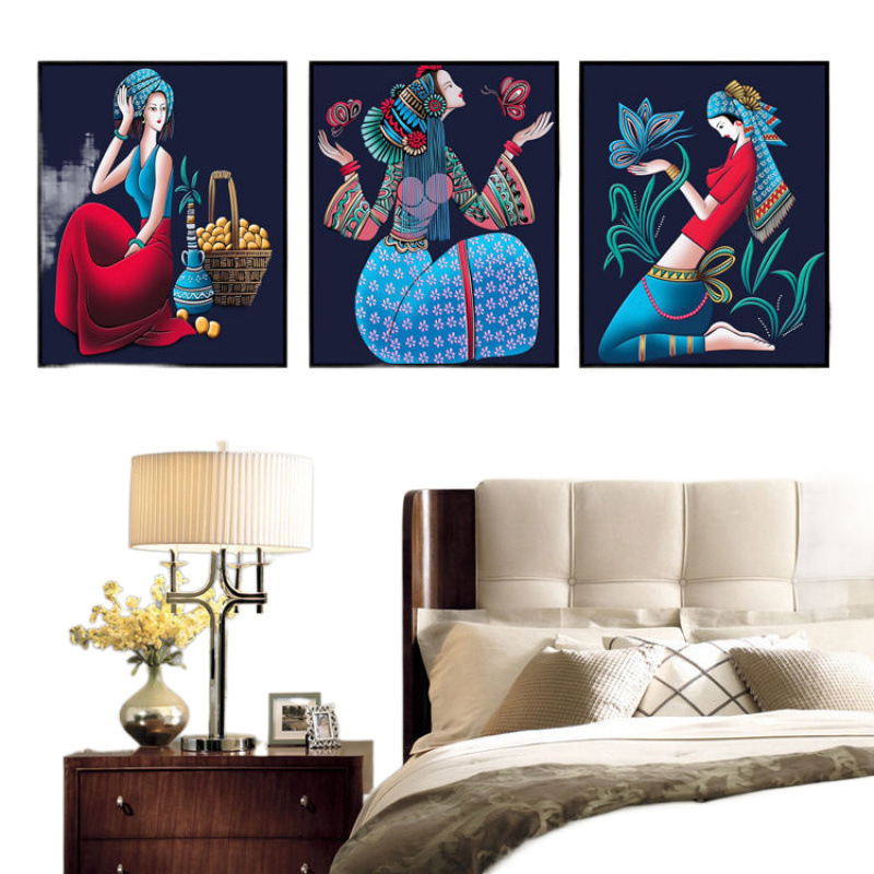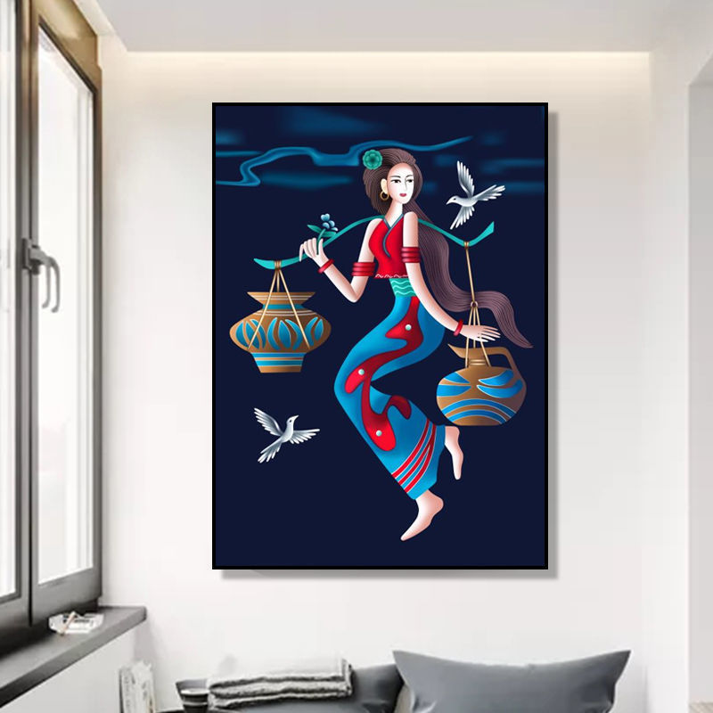 中式复古少数民族风装饰画舞蹈艺术客厅餐厅挂画玄关卧室背景壁画