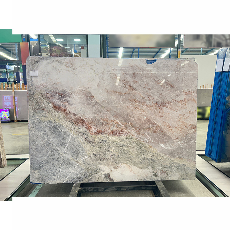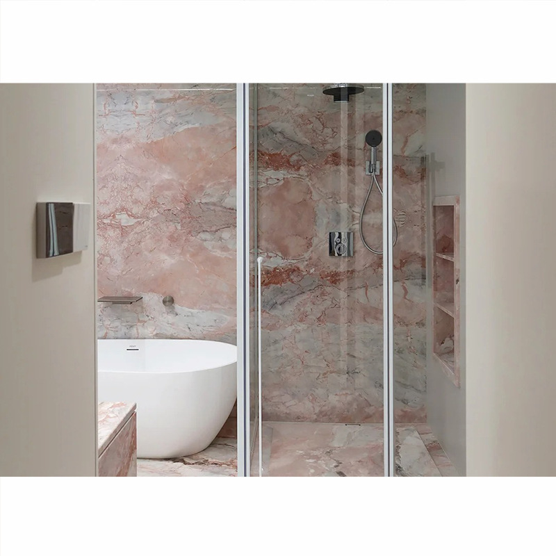 四季粉天然大理石板电视背景墙透光奢石餐桌楼梯石材酒店餐厅吧台