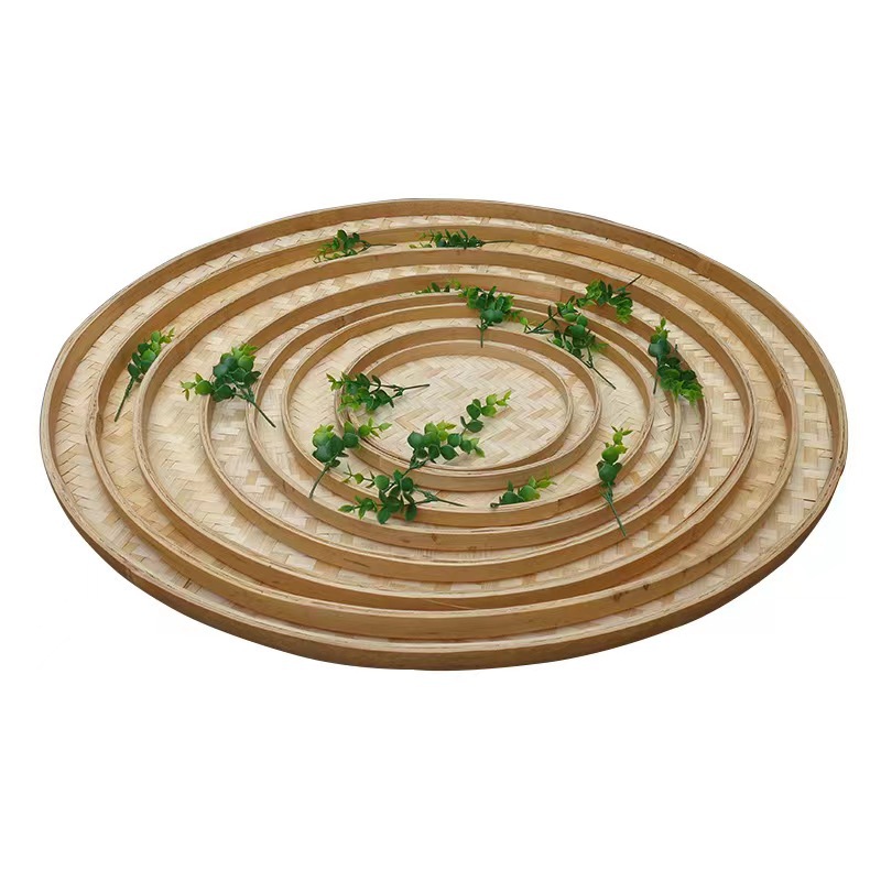 竹编竹制品竹筛子晾晒无孔圆簸箕绘画竹匾幼儿园手工装饰吊顶托盘
