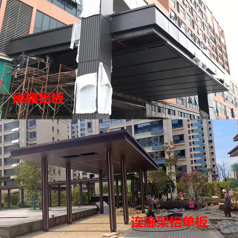 廊架咖啡色铝单板天桥凉亭屋檐金属装饰小区门头入户雨棚造型铝板