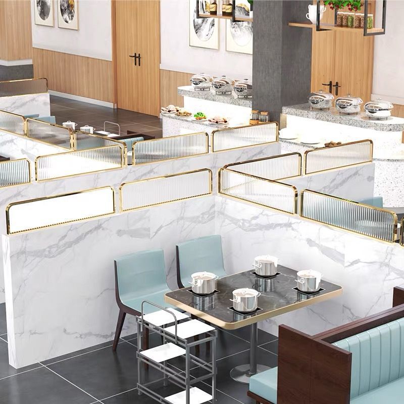 餐厅火锅店长虹玻璃屏风轻奢卡座隔断奶茶店饭店酒吧简约金属遮挡