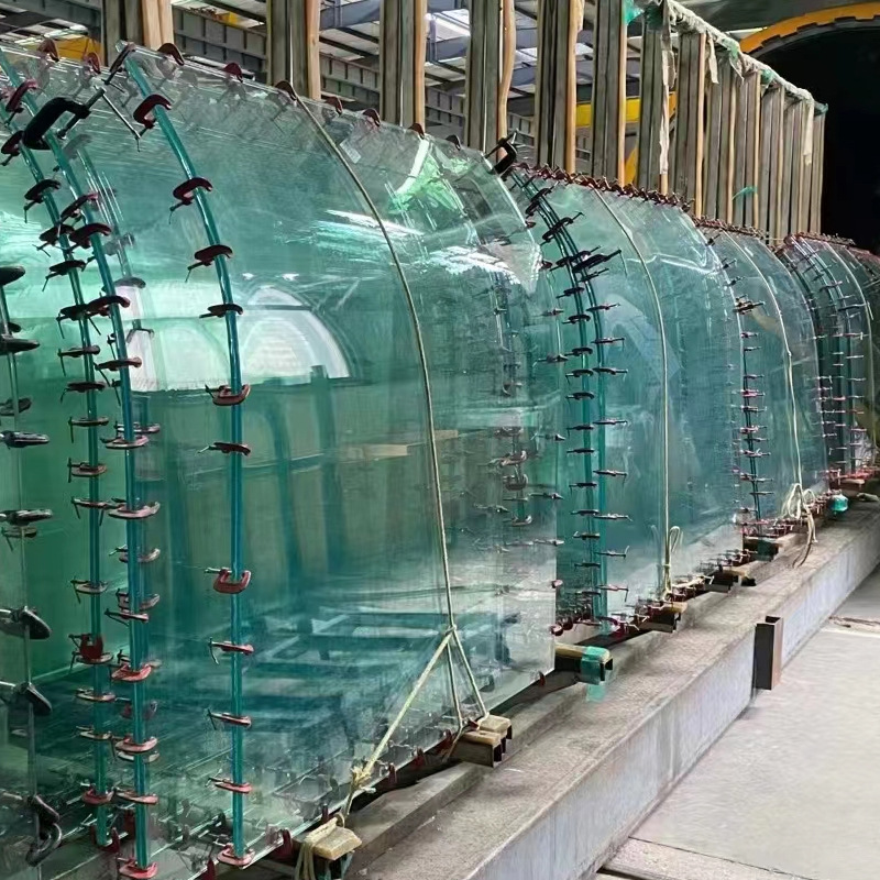 厂家弯钢玻璃夹胶中空曲面弧形热弯异形鱼池茶几桌面钢化玻璃订货
