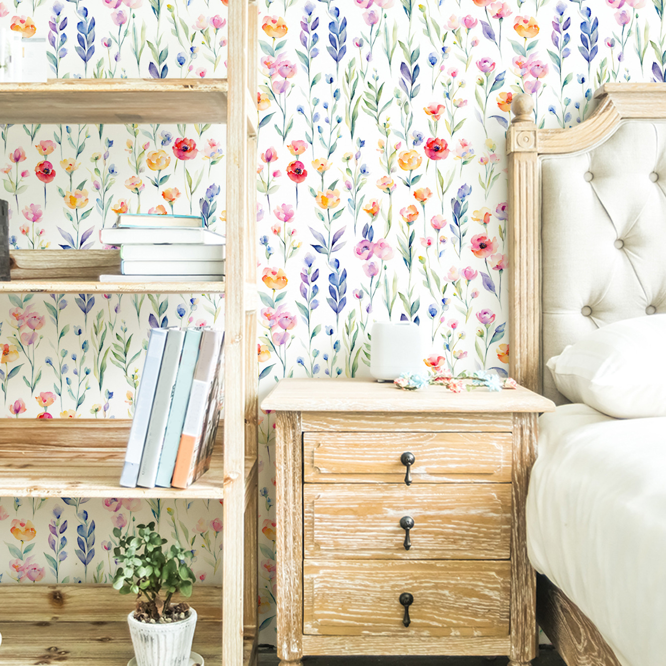 新款家用自粘墙纸批发彩绘花朵宿舍背景墙卧室墙面装饰壁纸批发