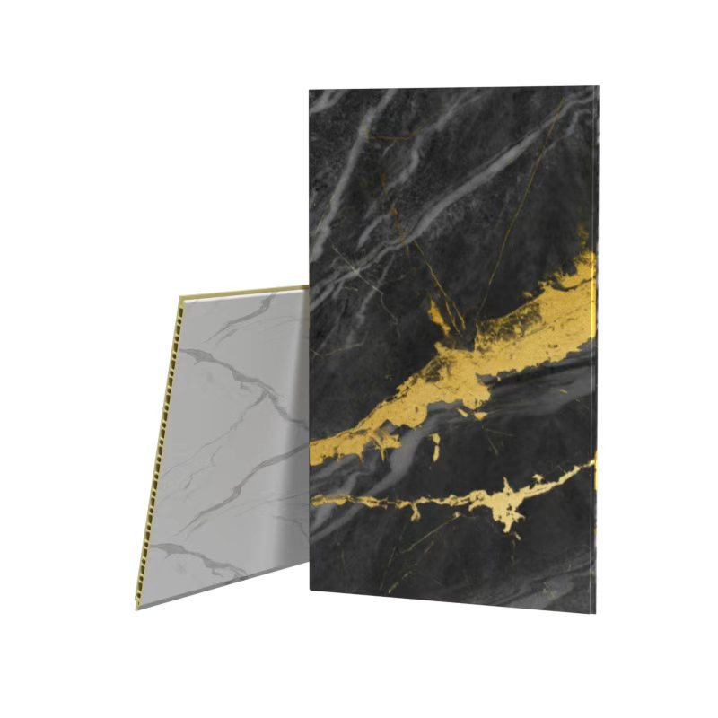 大理石纹竹木纤维集成墙板pvc潘多拉连纹快装自装木饰面护墙板