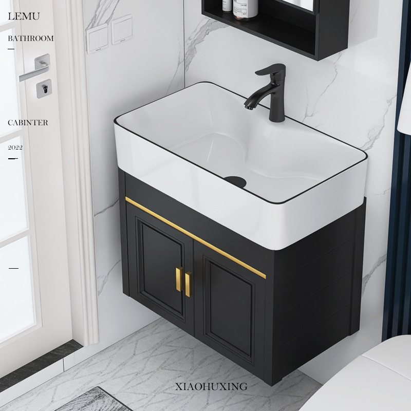 - 55x30(黑边)盆柜+黑色龙头+镜柜