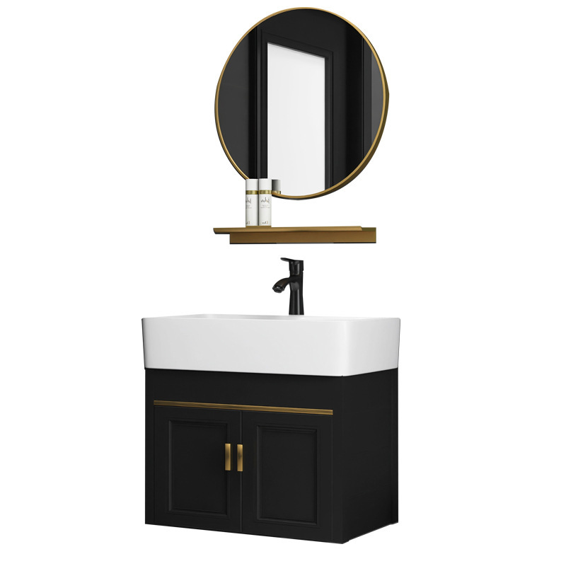 - 48x37(黑边)盆柜+黑色龙头+圆镜