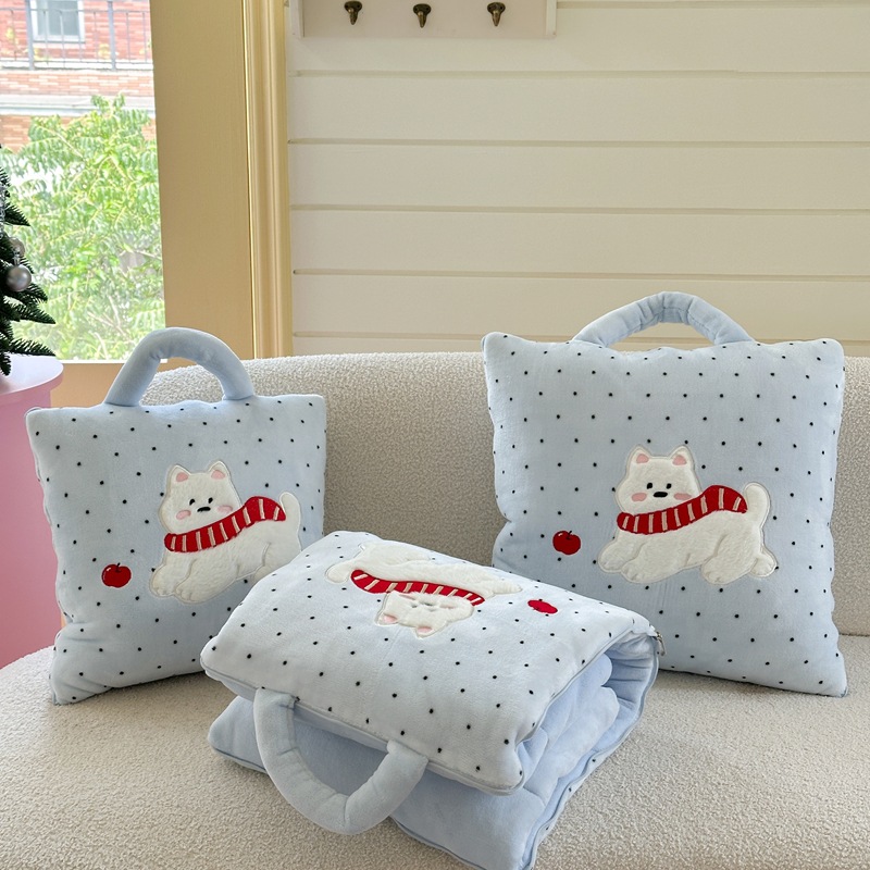 加厚牛奶绒小狗抱枕被子两用办公室客厅手提午休毯叠学生靠垫冬季