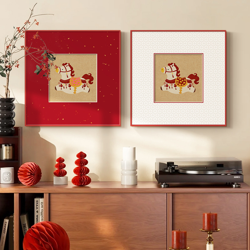 马上有钱新年招财客厅装饰画餐厅挂画饭厅高级感卧室玄关斗柜摆画