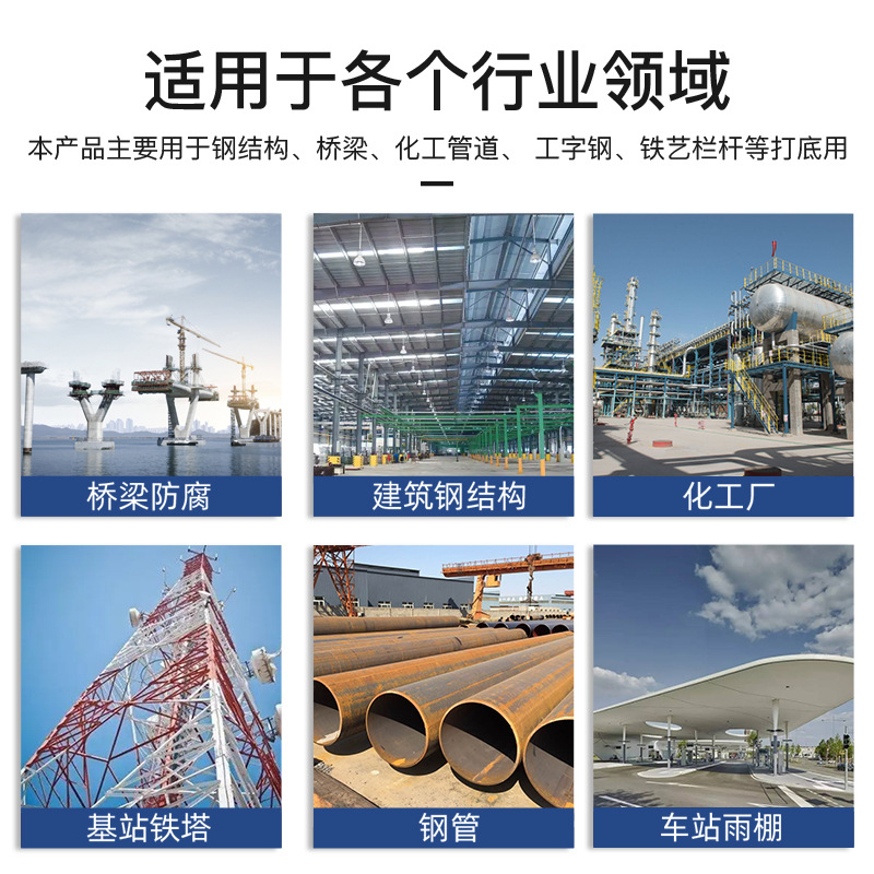 适应各种工厂、修理场、球场、停车场、仓库、商场等地面场所底漆涂装。