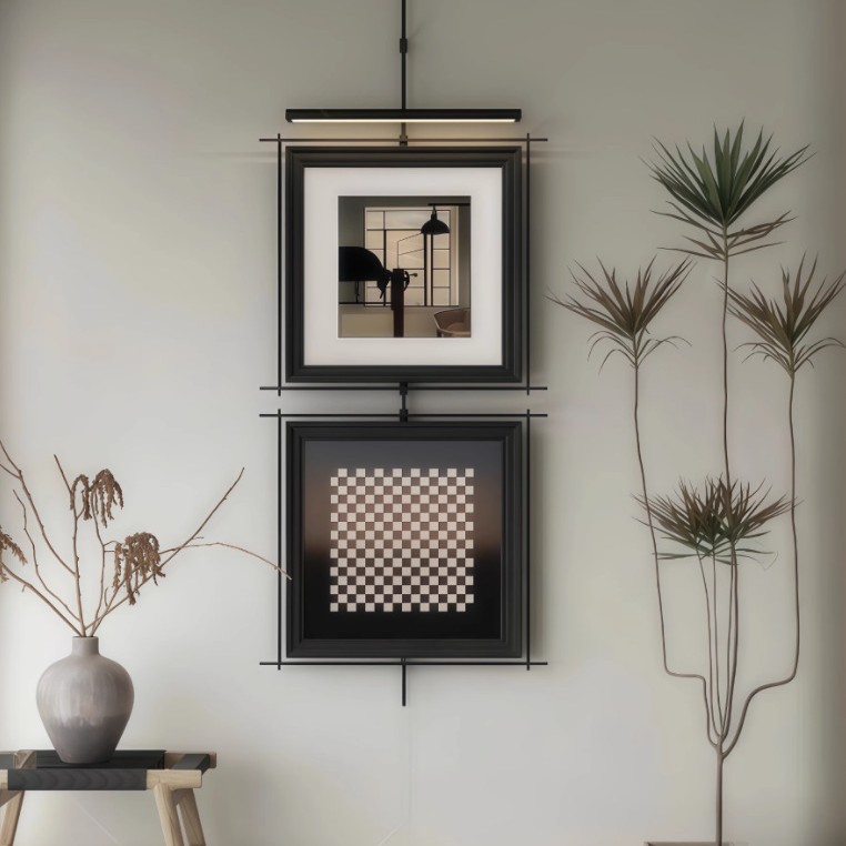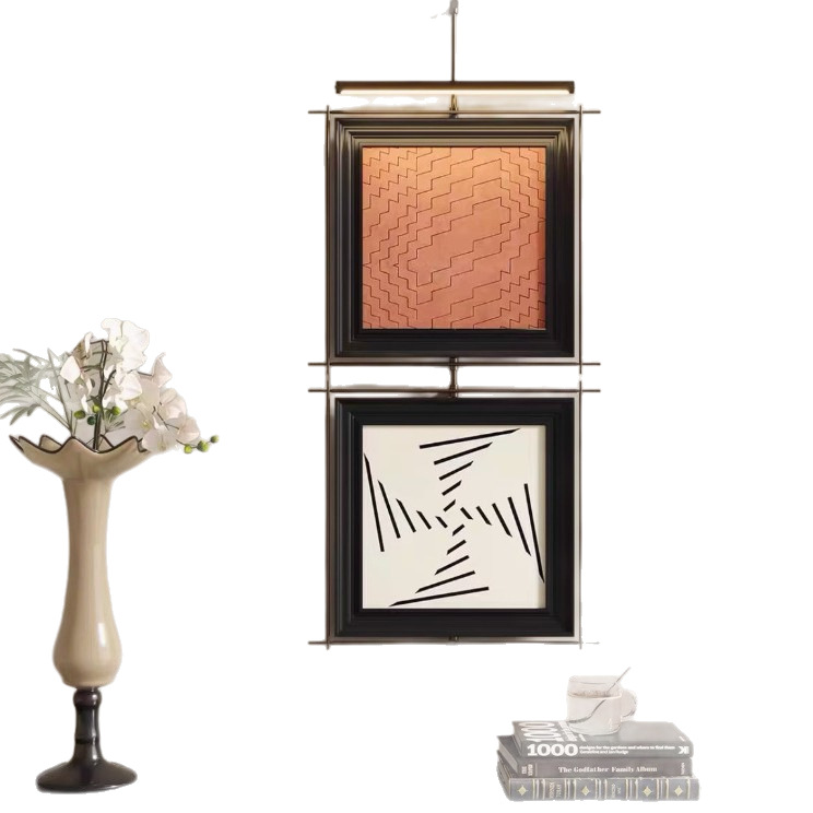 高级轻奢金属杆氛围灯壁灯装饰画两幅画酒店餐厅吊杆走廊尽头挂画