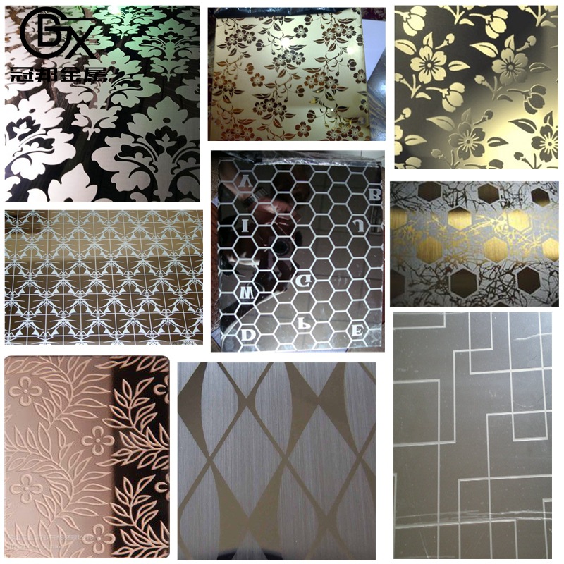 304不锈钢蚀刻花纹板 仿青红黄古铜图纹雕刻腐蚀不锈钢装饰板厂家