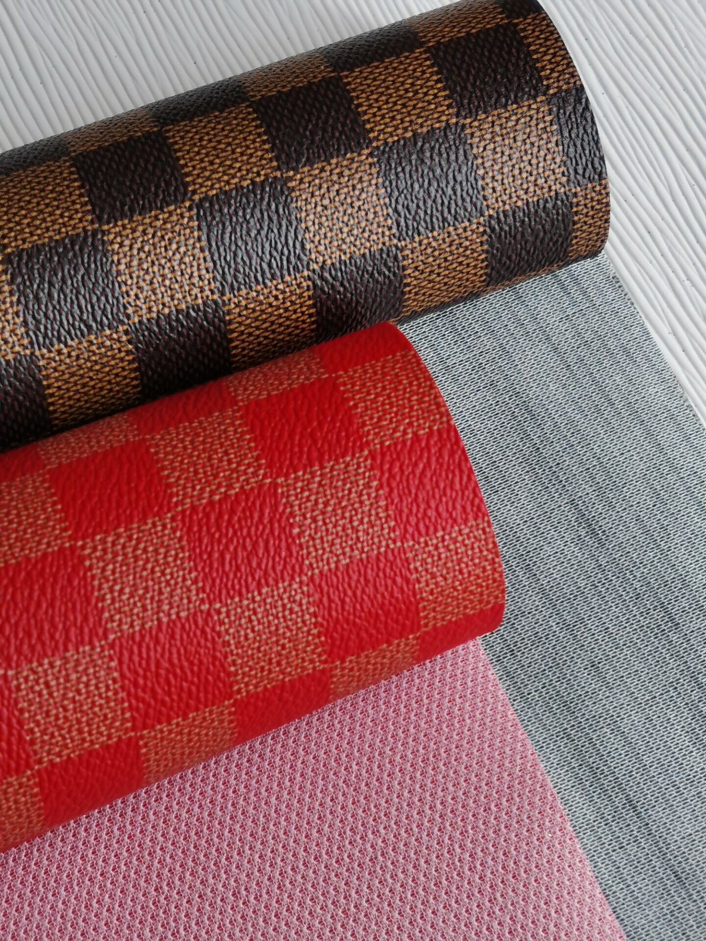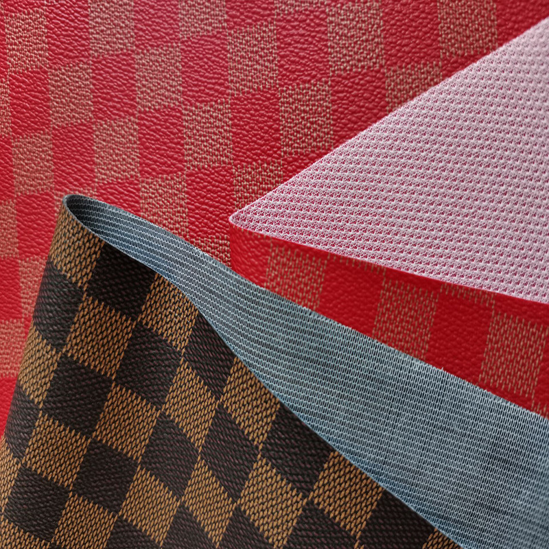 针织底方格子印花PVC人造仿合成皮革箱包手袋软硬包墙面家具面料