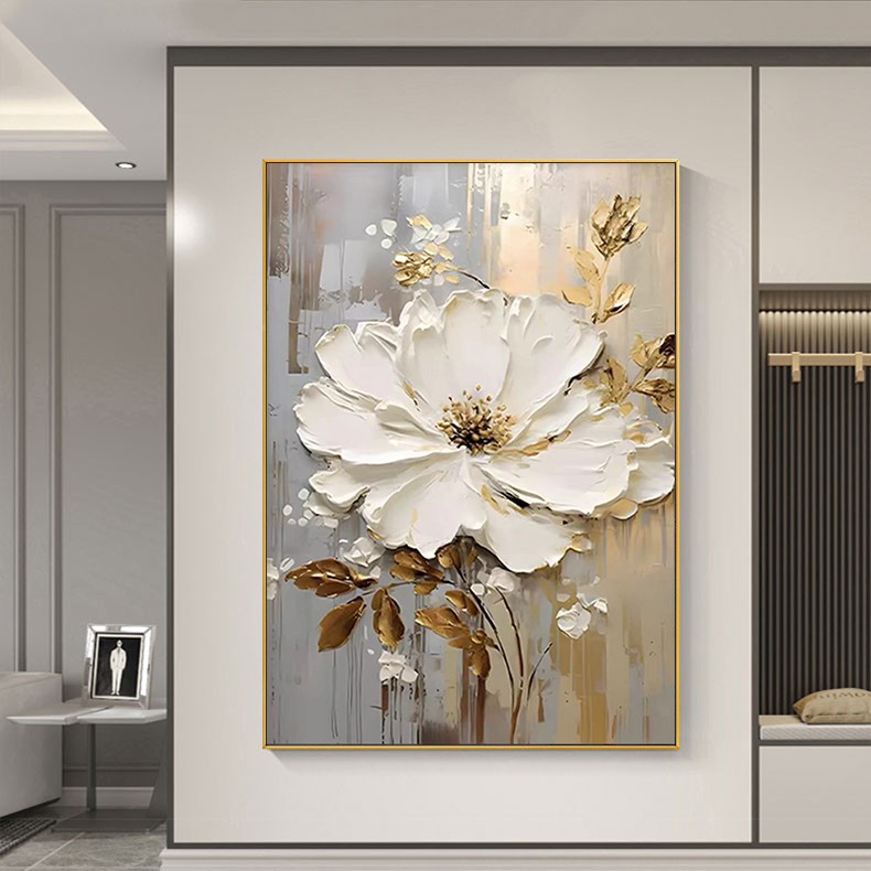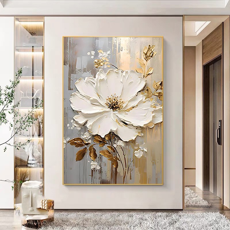 手绘油画《花开富贵》牡丹客厅沙发背景墙装饰画玄关挂画餐厅壁画