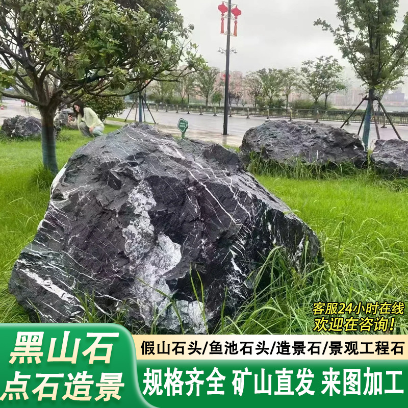 黑山石造景石头 草坪置石 园林景观石 点缀石头 假山石料 水景石